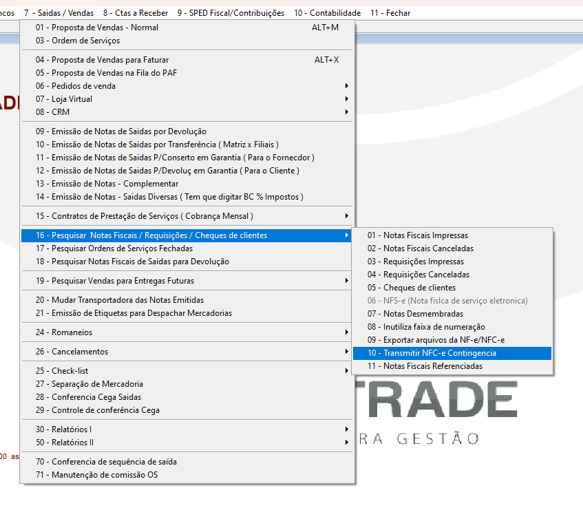Você precisa desabilitar a contingência, faça o mesmo passo do [Contingencia NFCE](https://suporte-conttrade.gitbook.io/conttrade-erp/contingencia-nfce), mudando o parâmetro para "NÃO"