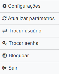 Para usuários com perfil criado, o menu só listará o que estiver liberado para ser visualizado.
