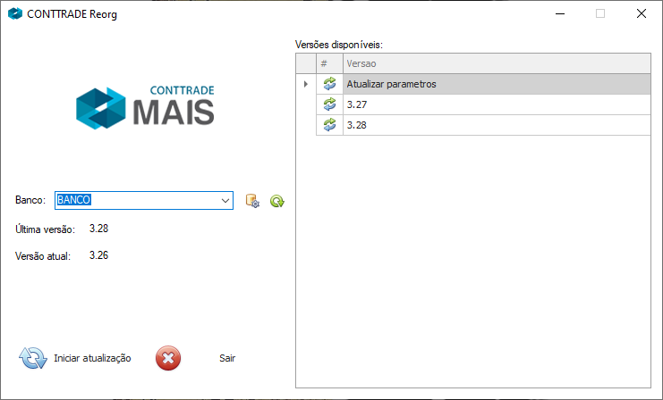 Use o REORGANIZADOR.exe ou abra a tela de login e pressione F12. Selecione o banco de dados que precisa ser atualizado.