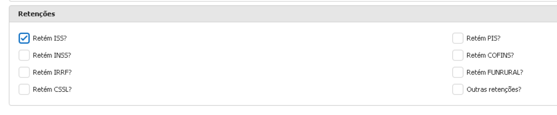 Item 12: Retenções: Nesse campo existem várias caixas de seleção e o objetivo e marcar todos os impostos que serão retidos obrigatoriamente por meio do CFOP que esta sendo cadastrado.