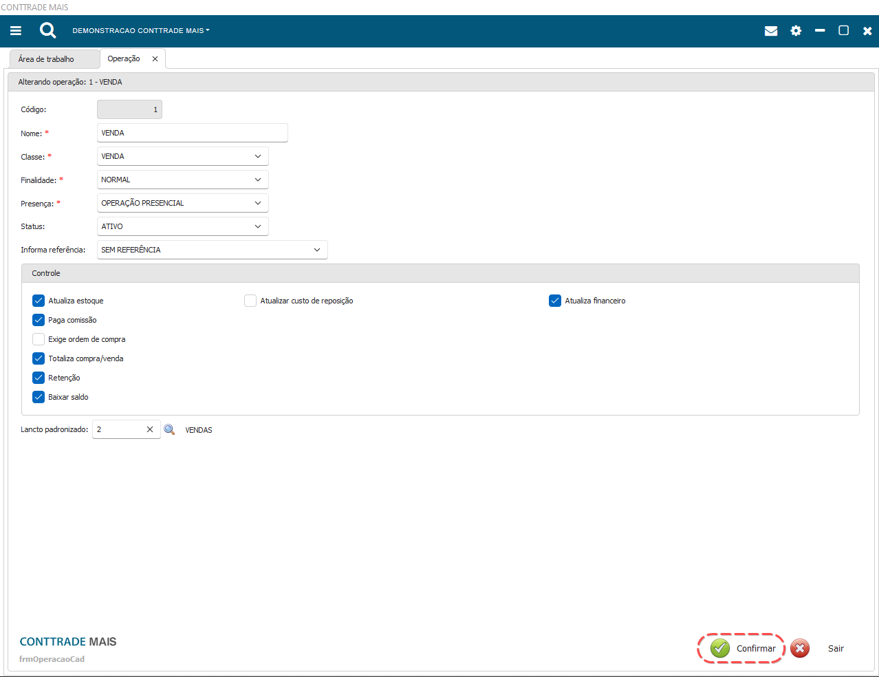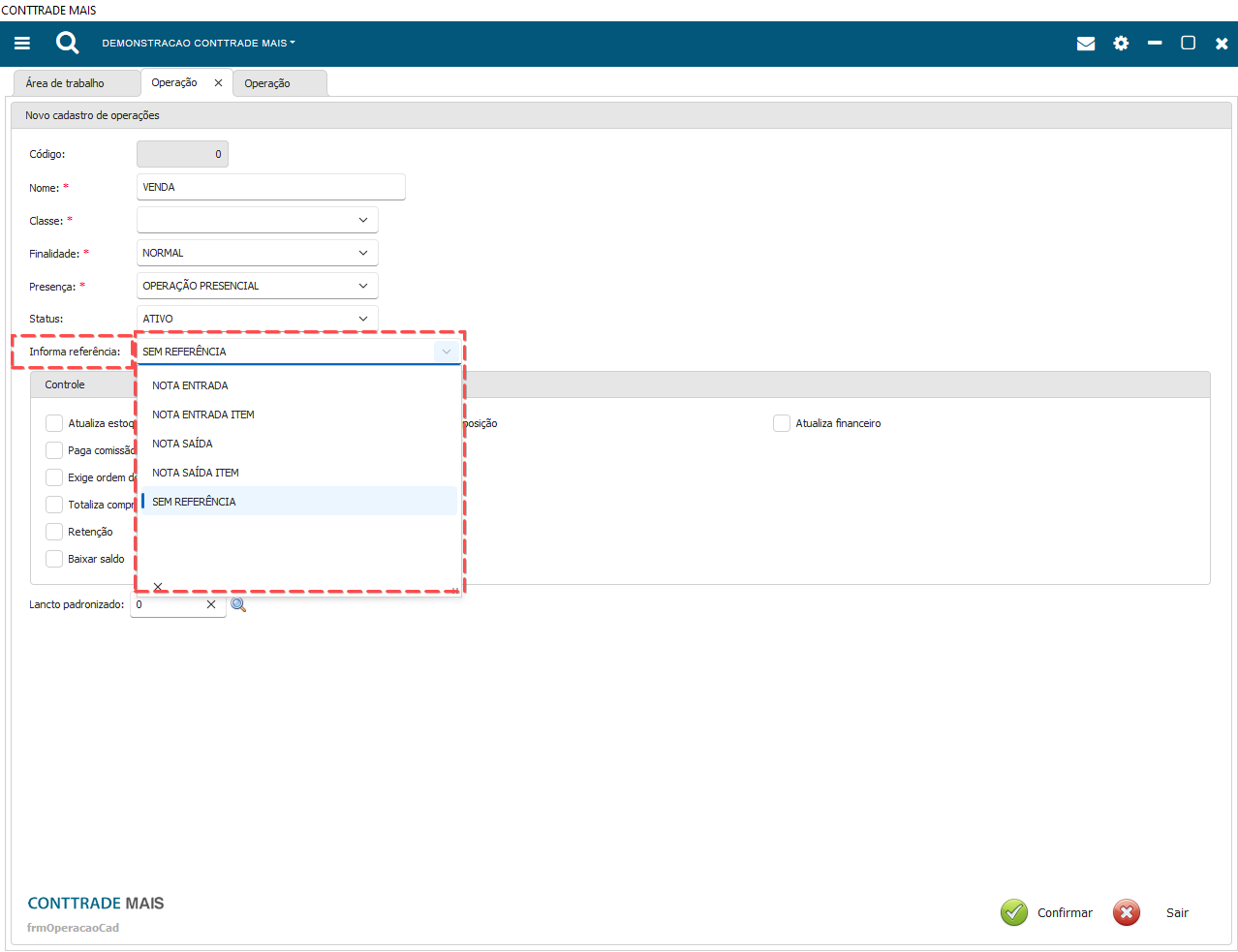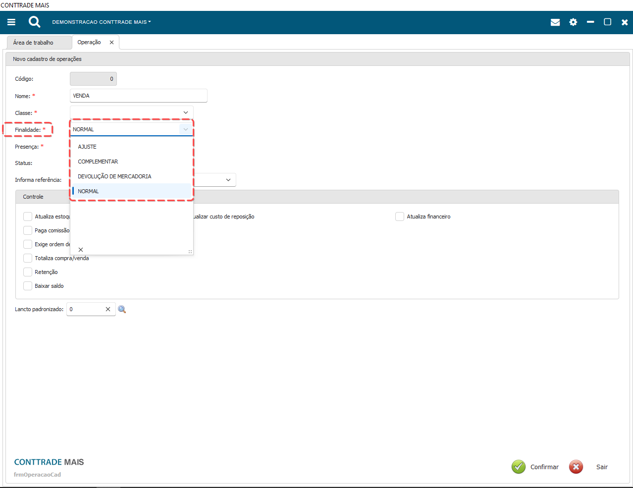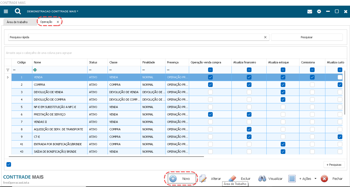 Operação tem a finalidade de controlar os movimentos feitos dentro do sistema, para entrada e saída de documentos fiscais.