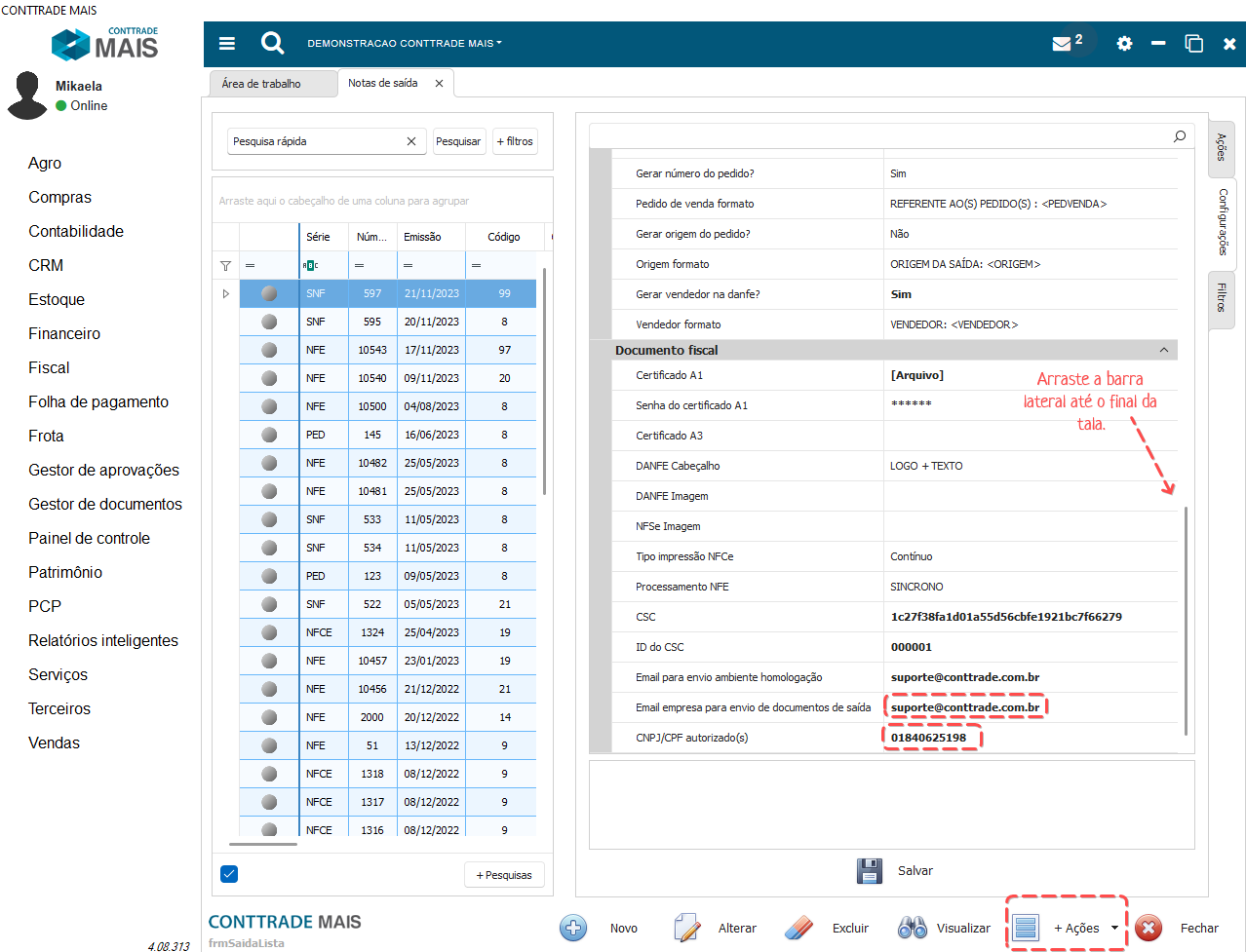 Configurando envio de documentos fiscais de saída
